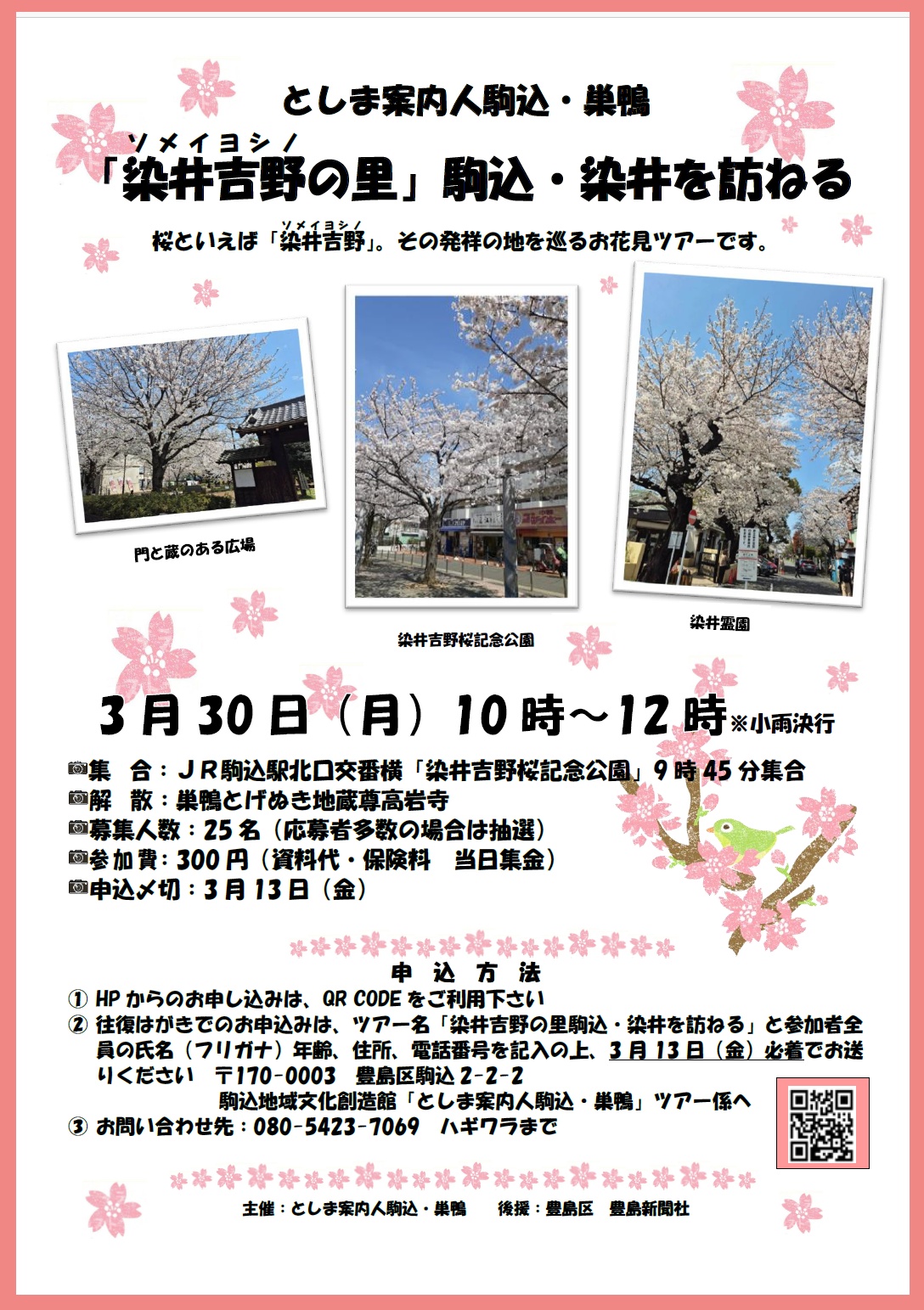 集 合:JR駒込駅北口交番横「染井吉野桜記念公園」9時45分集合