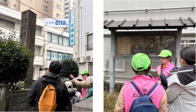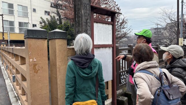 主なコース:西巣鴨駅(集合)⇒日本農林社⇒西尾商店⇒近藤勇の墓碑⇒平尾一里塚⇒東光寺⇒観明寺⇒平尾宿脇本陣⇒いたばし観光センター(休憩)⇒遍照寺⇒仲宿本陣跡⇒文殊院⇒仲宿本陣跡⇒板橋⇒縁切榎(解散)